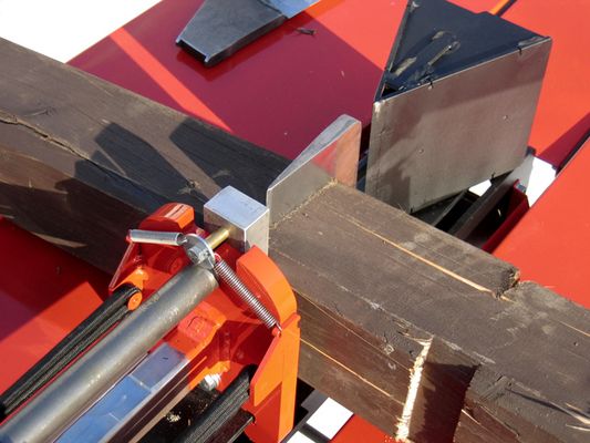 So dürfte es Besitzer von Holzspaltern geben die Ihren Holzspalter umrüsten wollen. Um das getrocknete Kantholz 12 x 12 cm wie im Bild zu Durchtrennen reichten 8 t
