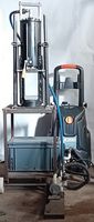 Det første billede viser vores 34-tons presse med en 200-bar højtryksrenser fra den italienske producent Comet, model K200 12/200 T Classic. Elmotoren kører med 2800 o/min, hvilket gør den økonomisk, men med 86 dB er den støjende. Smedjepressen har en pressekraft på 34 tons og en pressehastighed på 12 mm/sek.