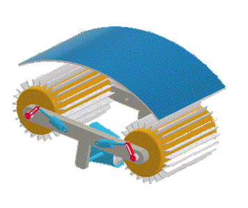 So liegt es nahe die Wasserräder selbst als Schwimmkörper zu bauen um Pontons überflüssig zu machen. Bildhaft gesagt wie ein Weinfass das ja auch schwimmt wenn es leer ist.